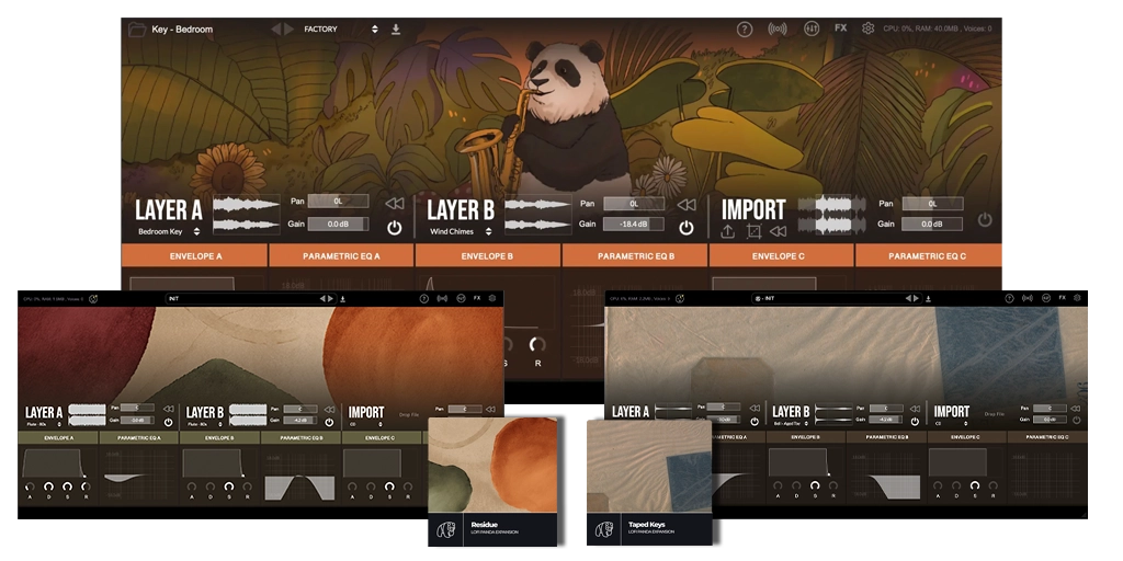 Almost all of the instruments sampled for Lofi Panda 3 were old vintage built instruments that held unique imperfections we felt fit perfectly for Lofi music. This instrument is the culmination of an extensive three-year sampling journey, encompassing multiple studios around the globe, including locations in Boston MA, Richmond VA, Charlotte NC, Greece, Panama, Austin TX, and California.